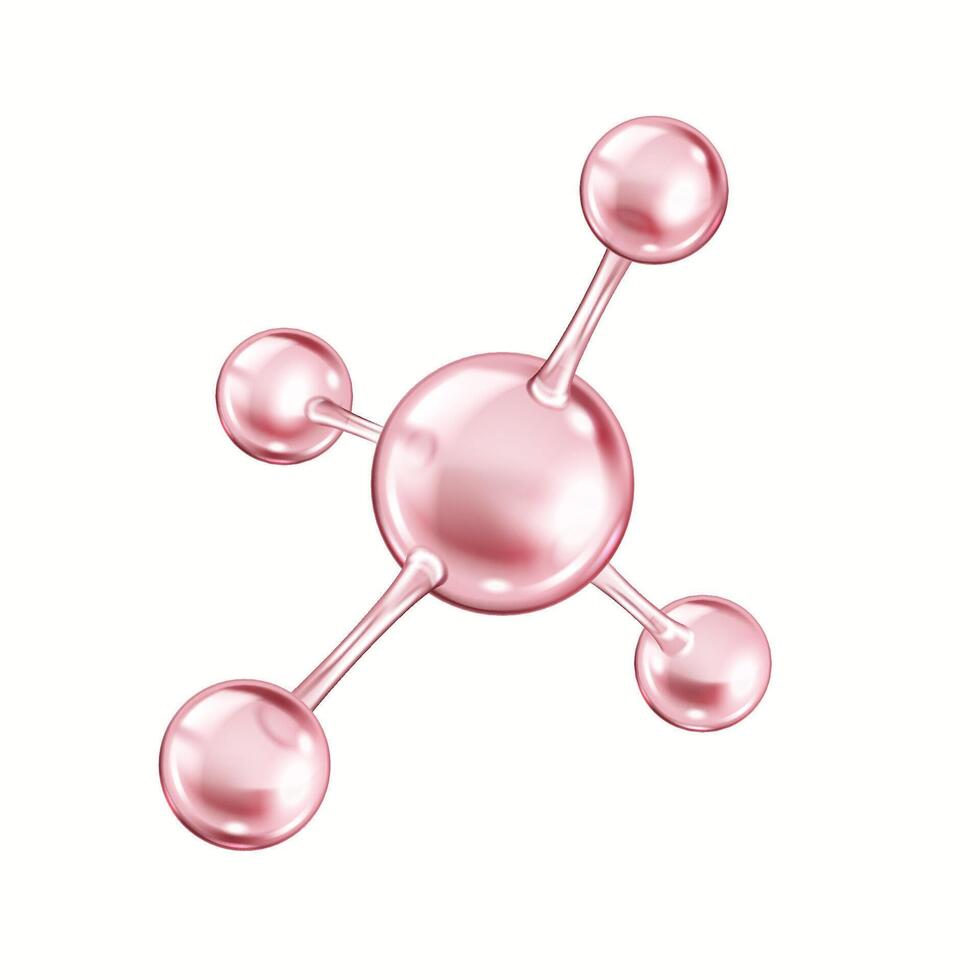 Pink collagen molecule structure rotates realistic illustration. Protein model for skin elasticity 3d object on white background Pro Vector