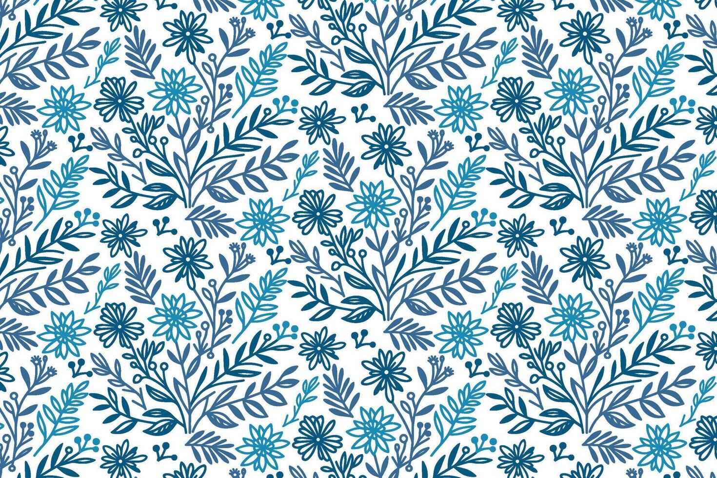 abstract hand drawn blue floral pattern using continuous line strokes for stylish fabric print pillowcase and wrapping paper designs vector