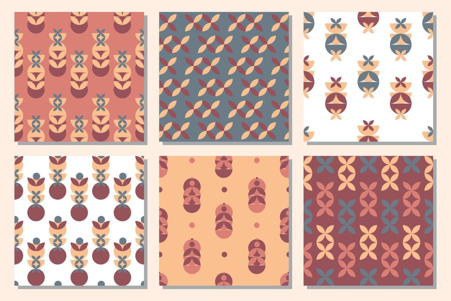 Set of geometric seamless patterns with abstract geometric leaves and shapes. Scandinavian motifs. Mosaic pattern. Pro Vector