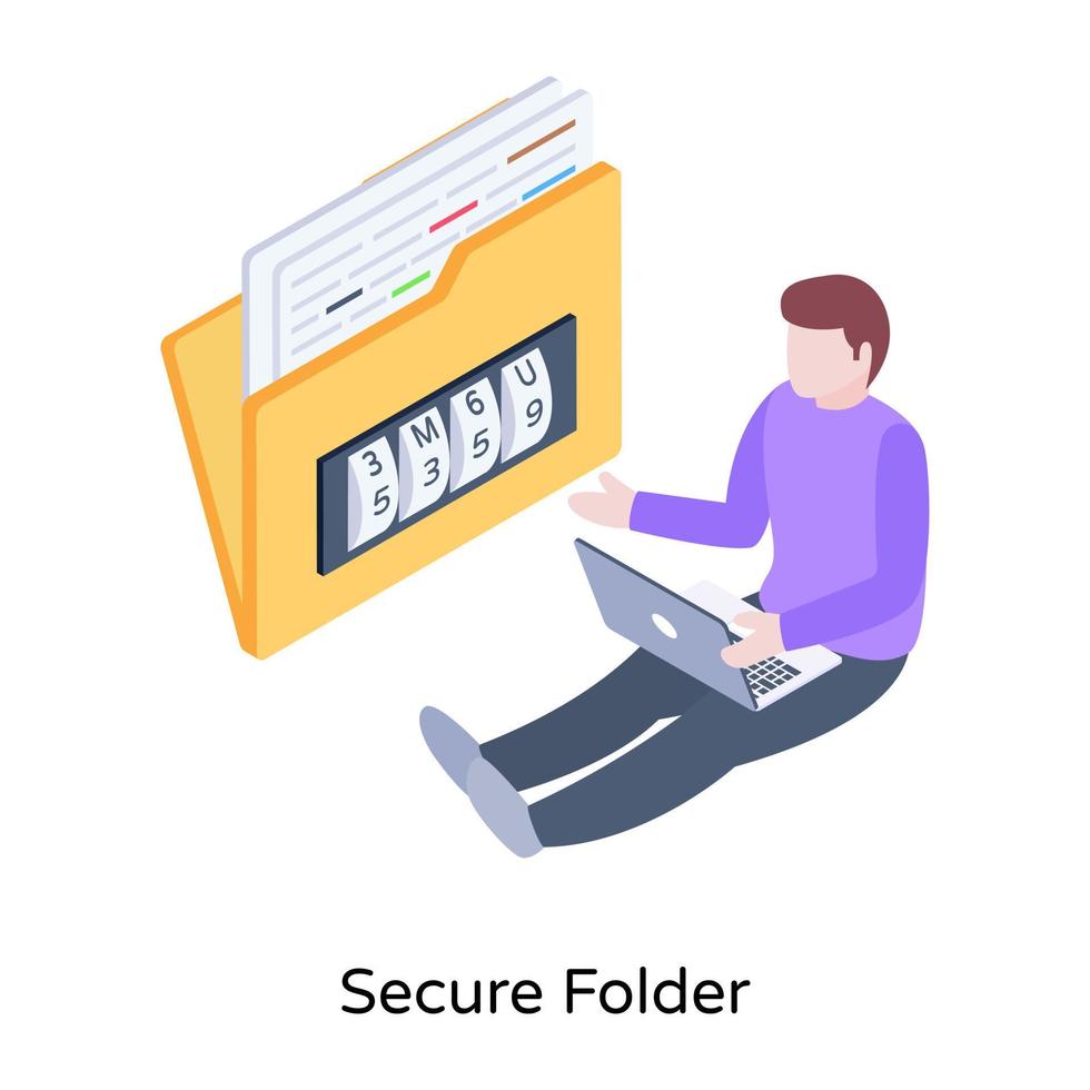 A scalable isometric illustration of secure folder Pro Vector