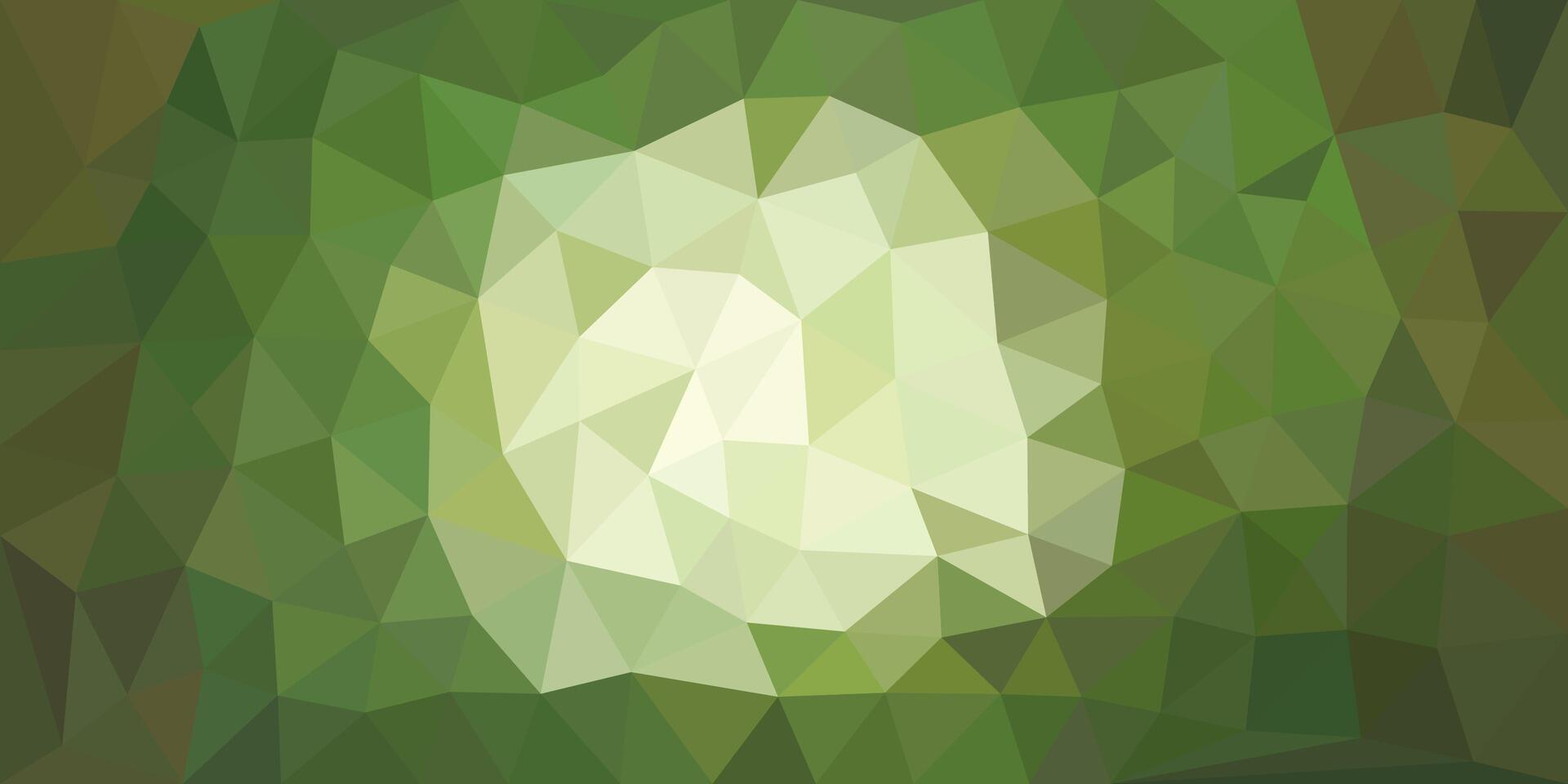 Abstract green and white low poly background featuring a central light shape surrounded by various shades of green triangles, creating a geometric, modern art style. Pro Vector