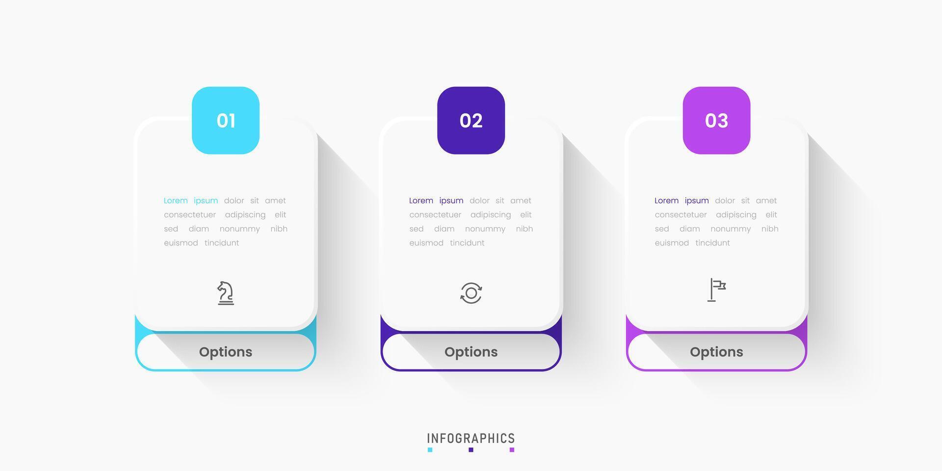 Infographic label design template with icons and 3 options or steps. Can be used for process, presentations, workflow layout, flowchart, info graph Pro Vector