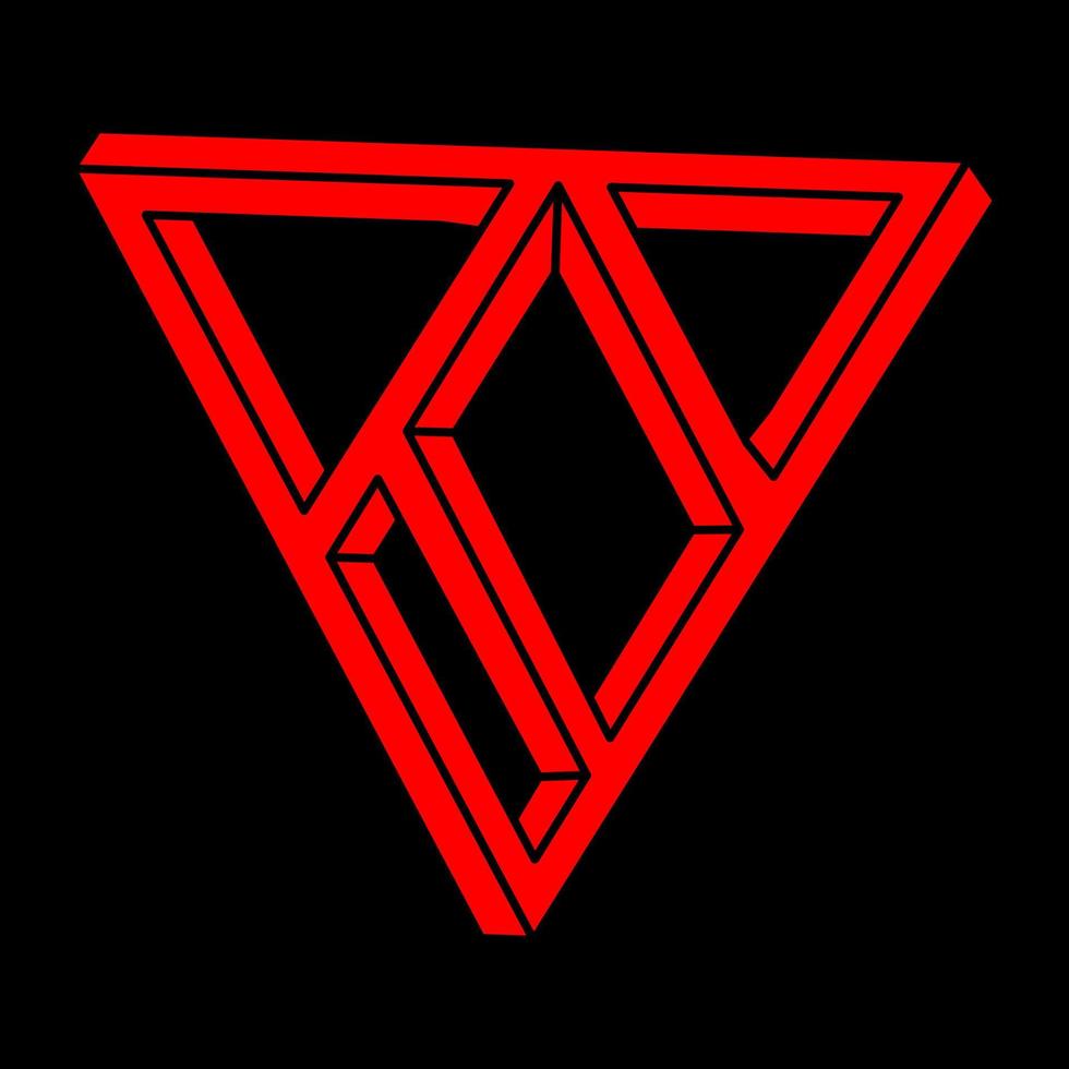 Impossible shapes. Sacred geometry figures. Optical illusion. Abstract eternal geometric objects. Impossible endless outline. Line art. Optical art. Impossible geometry shape on a black background. Pro Vector