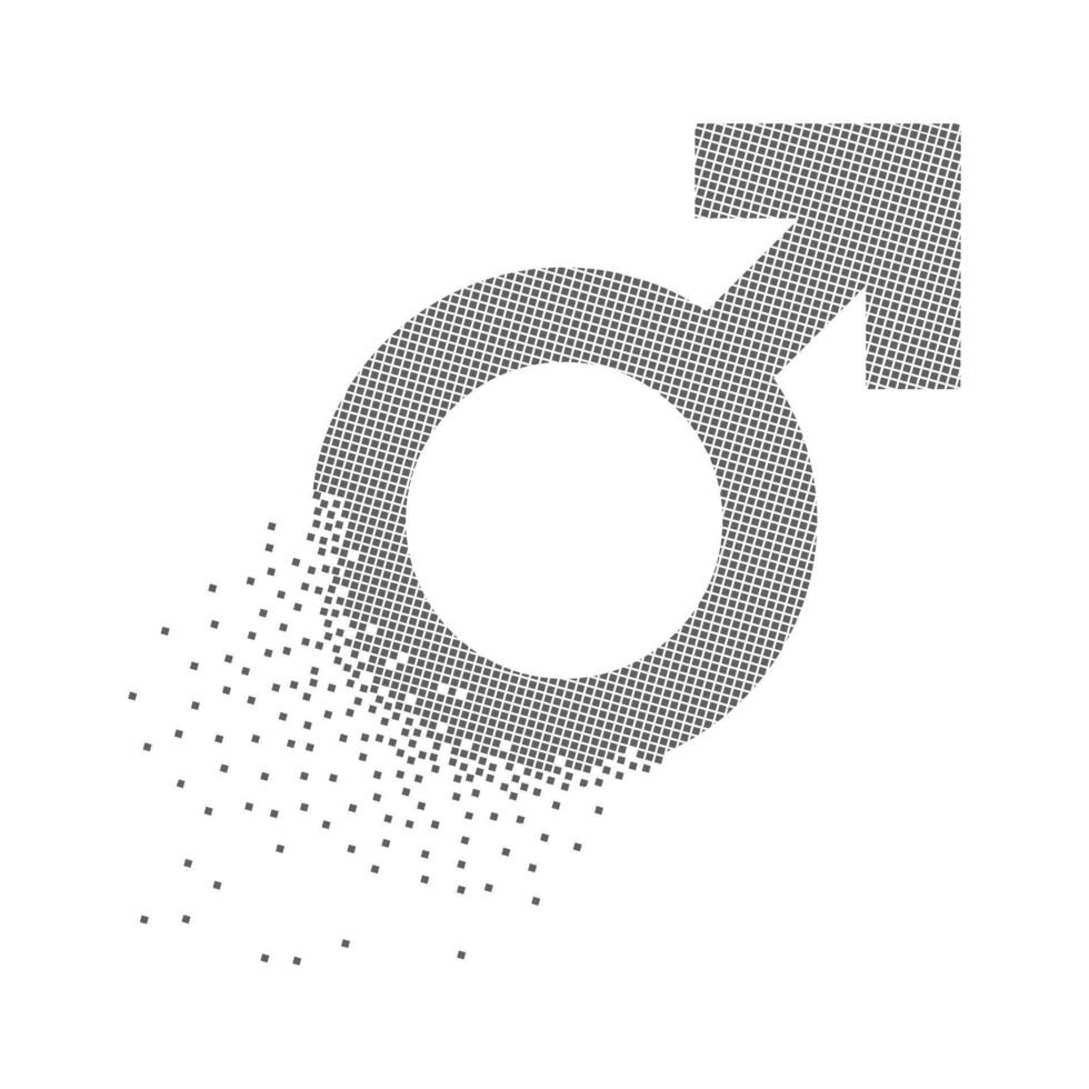 Male icon animated pixel dot art. Male pixel flat-solid. Dissolved and dispersed moving dot art. Unifying and integrative pixel motion. Modern icon connection points. Pro Vector