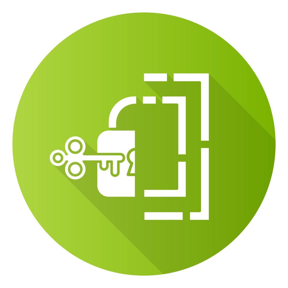 Riddle solution finding green flat design long shadow glyph icon. Maze, key-lock puzzle. Mental exercise. Logic game. Ingenuity, intelligence test. Brain teaser. Vector silhouette illustration Pro Vector