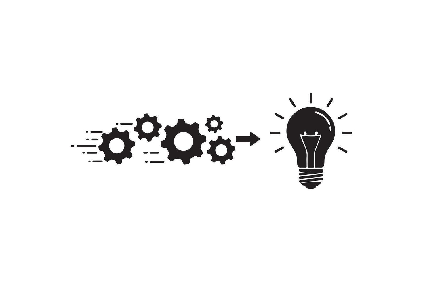 Thinking and Innovation Silhouette of Gears and Idea Bulb Pro Vector