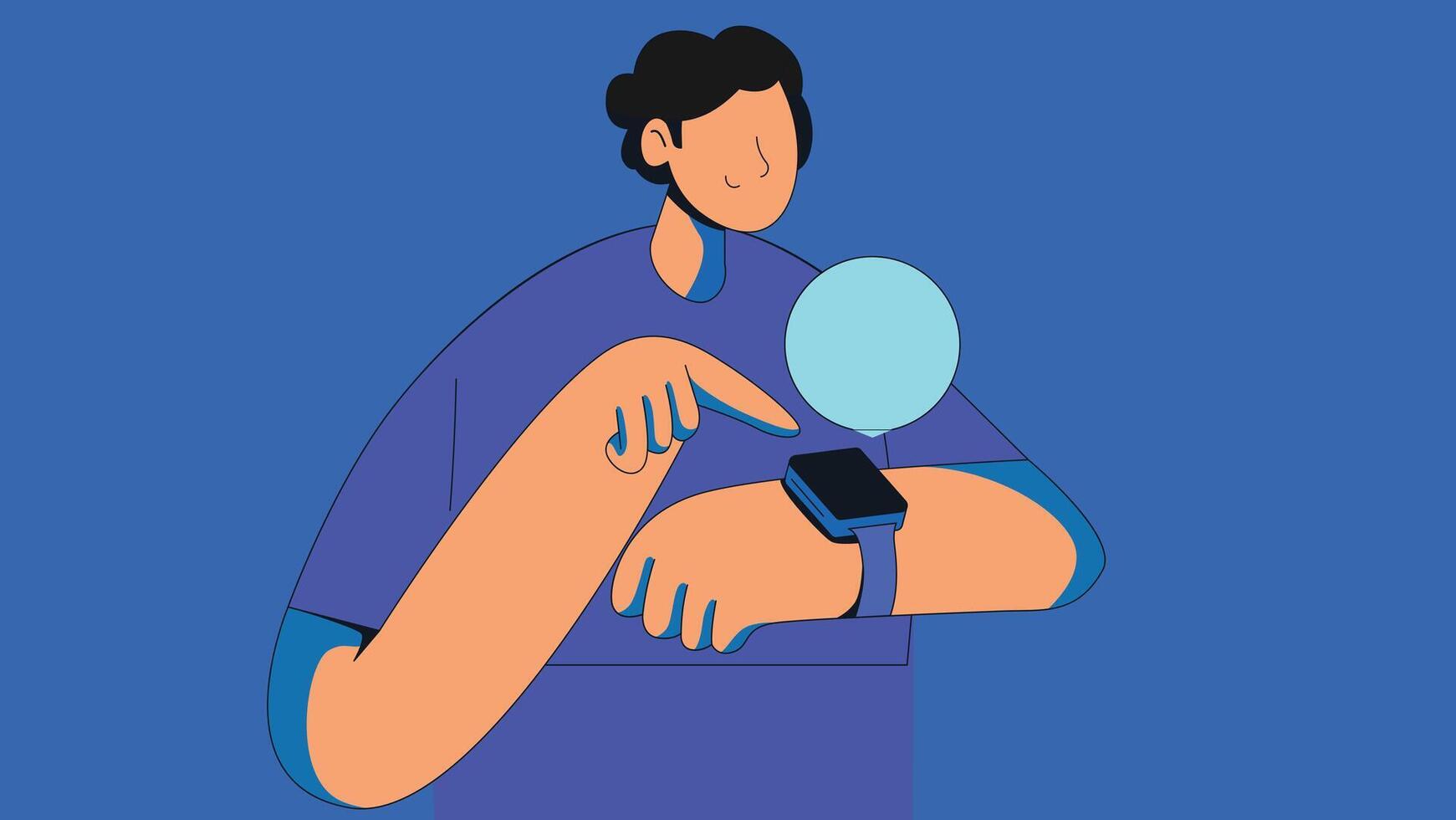A person clicks on a smart watch, engaging with its features like fitness tracking, notifications, and time management Pro Vector