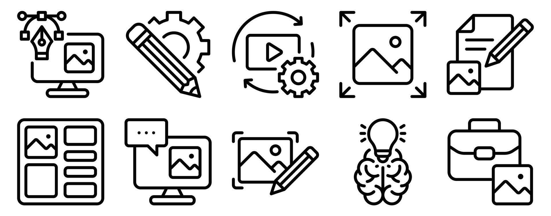 Art Design Icon Set Line Style Collection representing creativity visual expression and artistic concepts suitable for design projects educational use and creative platforms Pro Vector