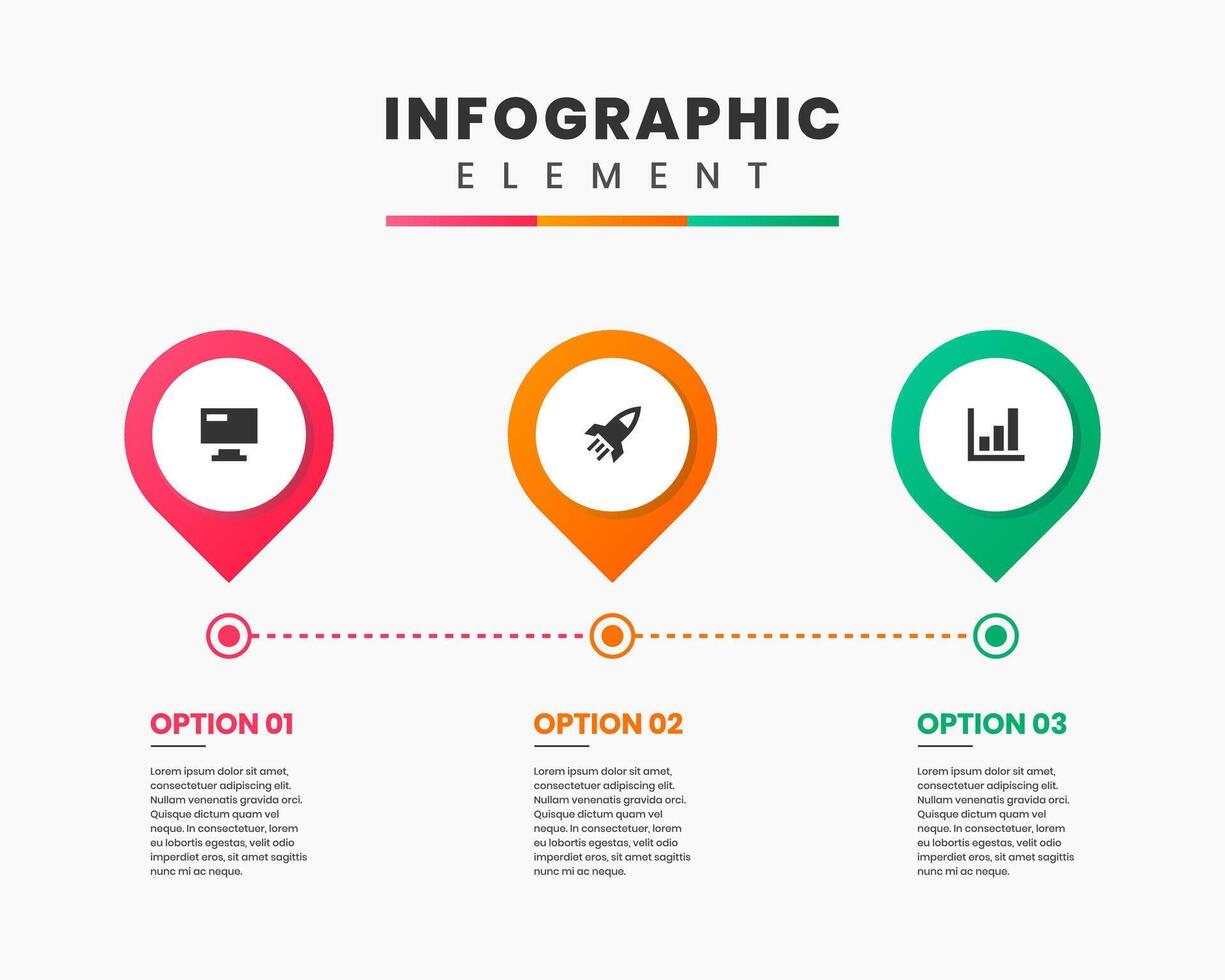Timeline Infographic Element Design icon templates with 3 options. Can be used for process diagram, presentations, workflow layout, banner, flow chart, infographic. Pro Vector