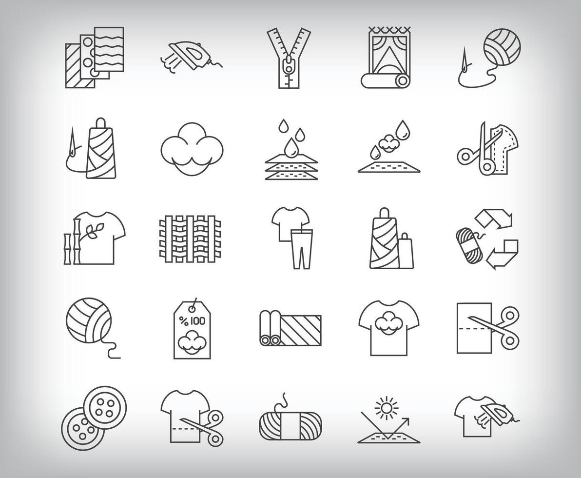 30 linear fill fabric textile simple icon set. Carpet, pattern, webbing, zipper and button design. Pro Vector