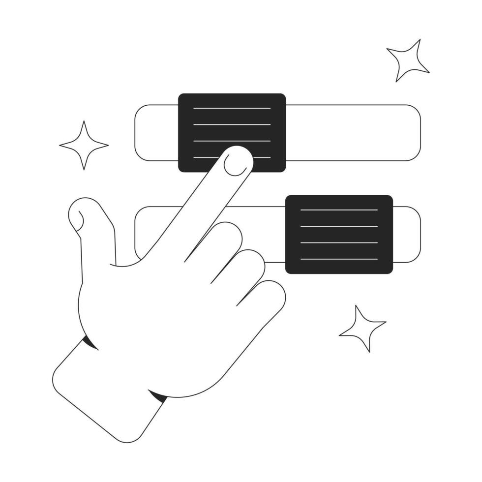 Hand interacting with sliders toggles line onboarding ui illustration. User customization. Interface configuration. Interactive control outline 2D concept isolated. Ink linear metaphor art Pro Vector