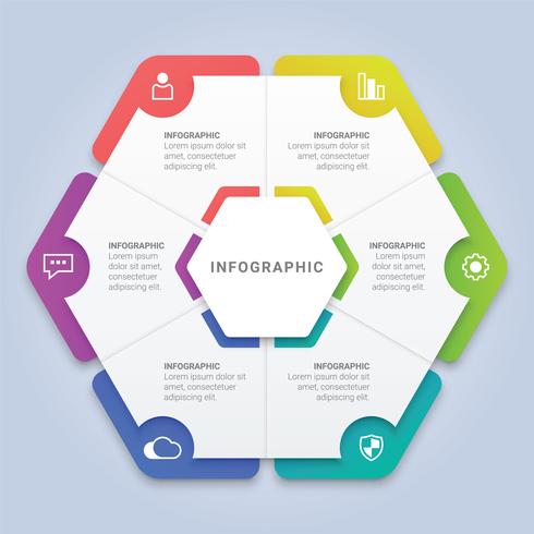 Vector Infographic Hexagon Template with 6 Options for Workflow Layout, Diagram, Annual Report, Web Design Pro Vector