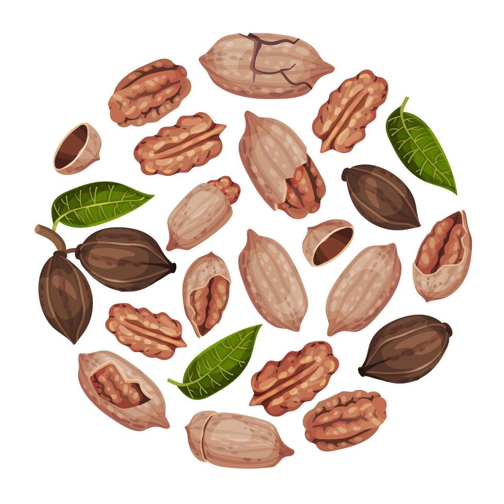 Pecan Nut Round Composition with Kernel and Shell Template Pro Vector