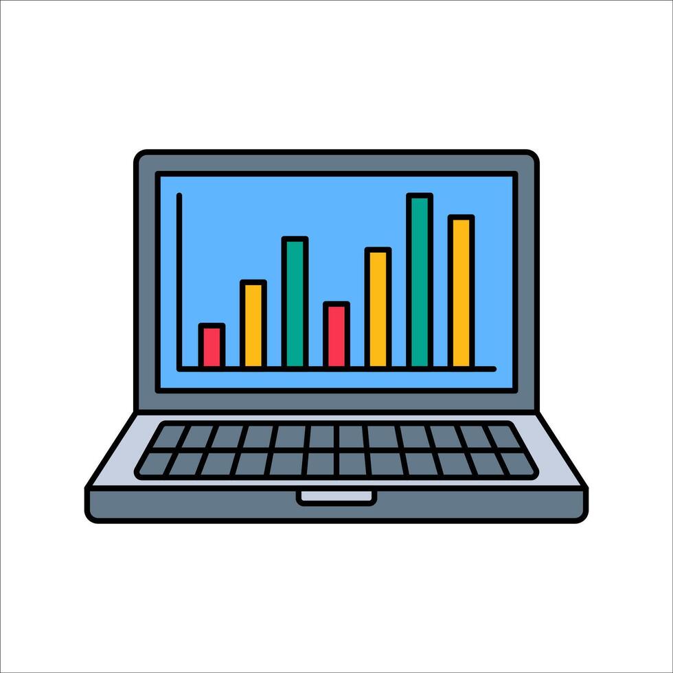 Laptop Analytics Flat design style, laptop with red graph screen, symbolizing data analysis, ideal for finance presentations and business dashboards Pro Vector