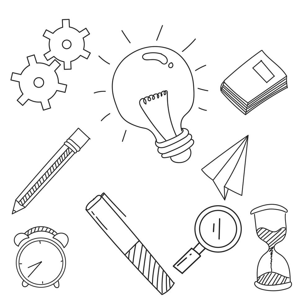 a set of icons that include a clock, a pencil, a paper clip, a light bulb Pro Vector