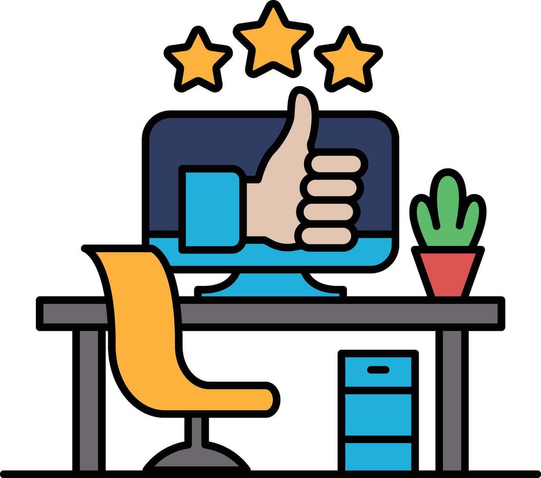 A computer monitor with a thumbs up symbol on it Pro Vector