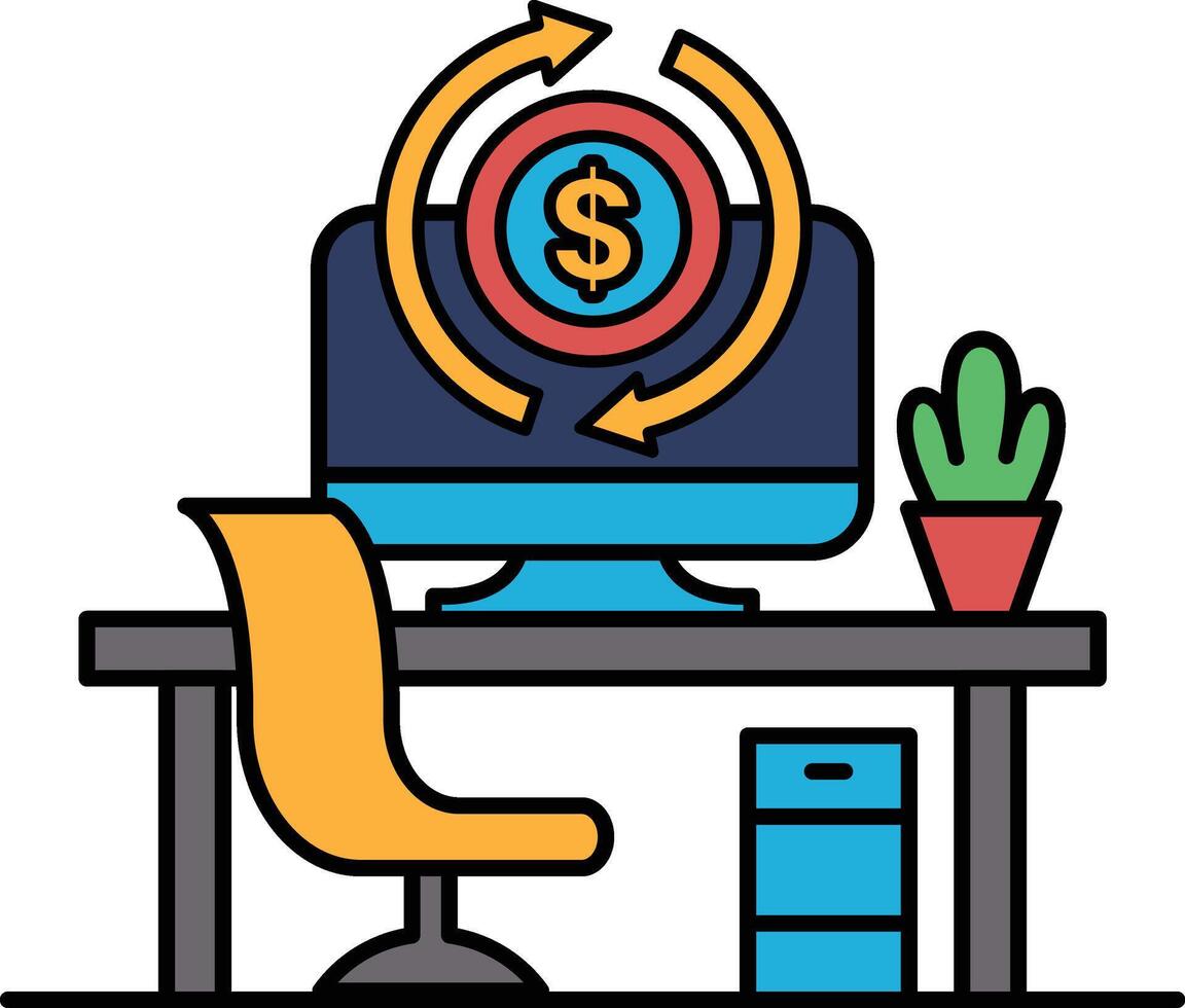 A computer monitor with a dollar sign on it and a green plant in the background Pro Vector