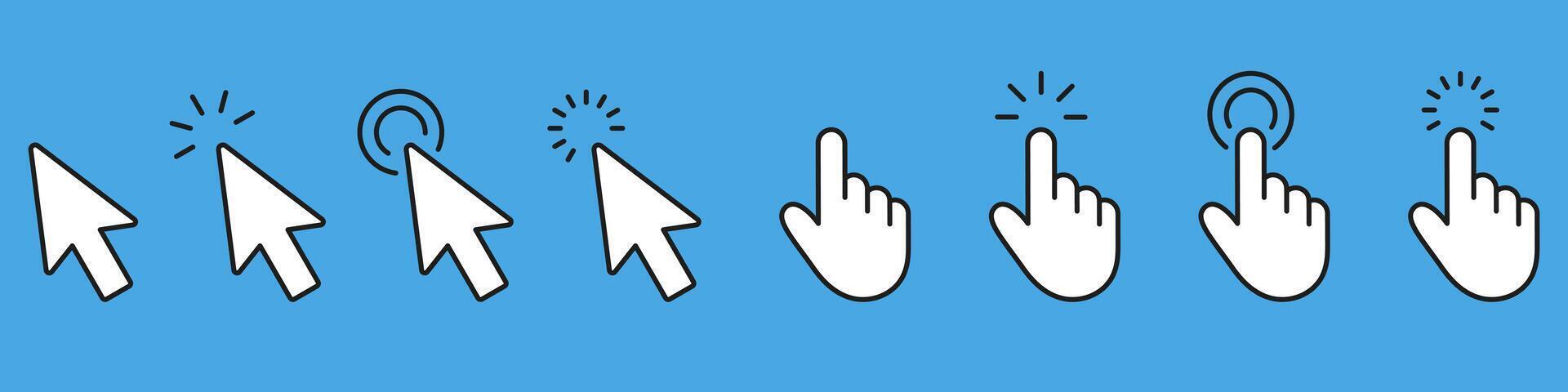 Cursor Pointer And Click Solid Icon Set. Hand And Arrow Interaction Silhouette Symbol Collection. Isolated Illustration Pro Vector