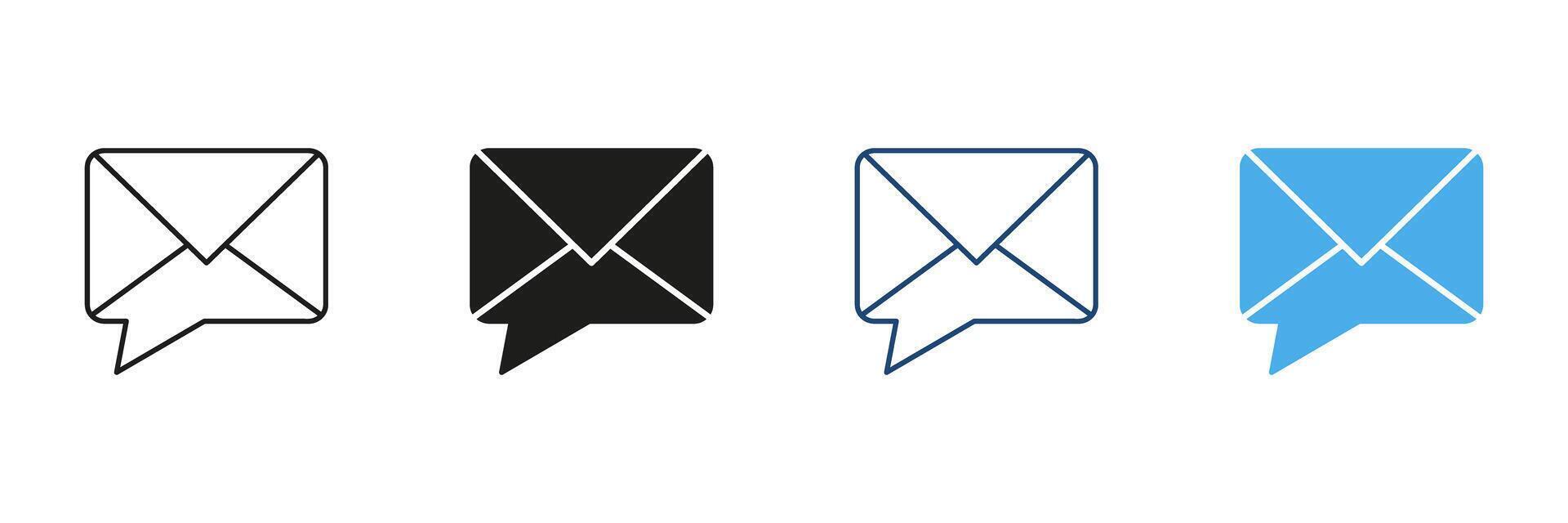 Envelope With Speech Bubble Icon Set. Email Communication And Messaging Outline And Silhouette Symbol Collection. Digital Correspondence And Chat Interface. Isolated Illustration Pro Vector