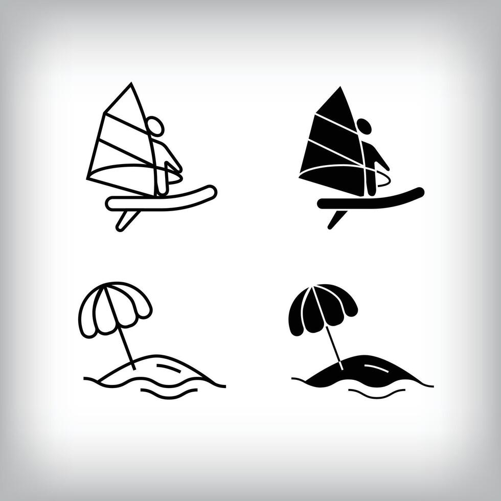 Beach and sailing hobby leisure design. Simple linear and flat activity icon set. Pro Vector