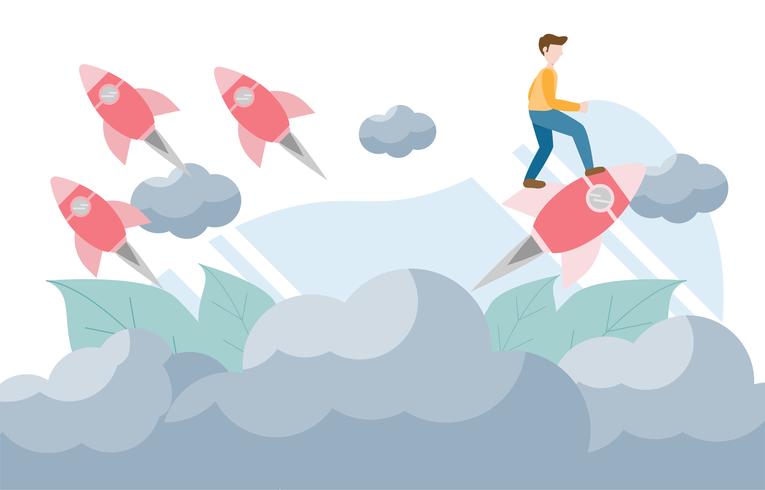 Think different concept with character.Creative flat design for web banner Pro Vector