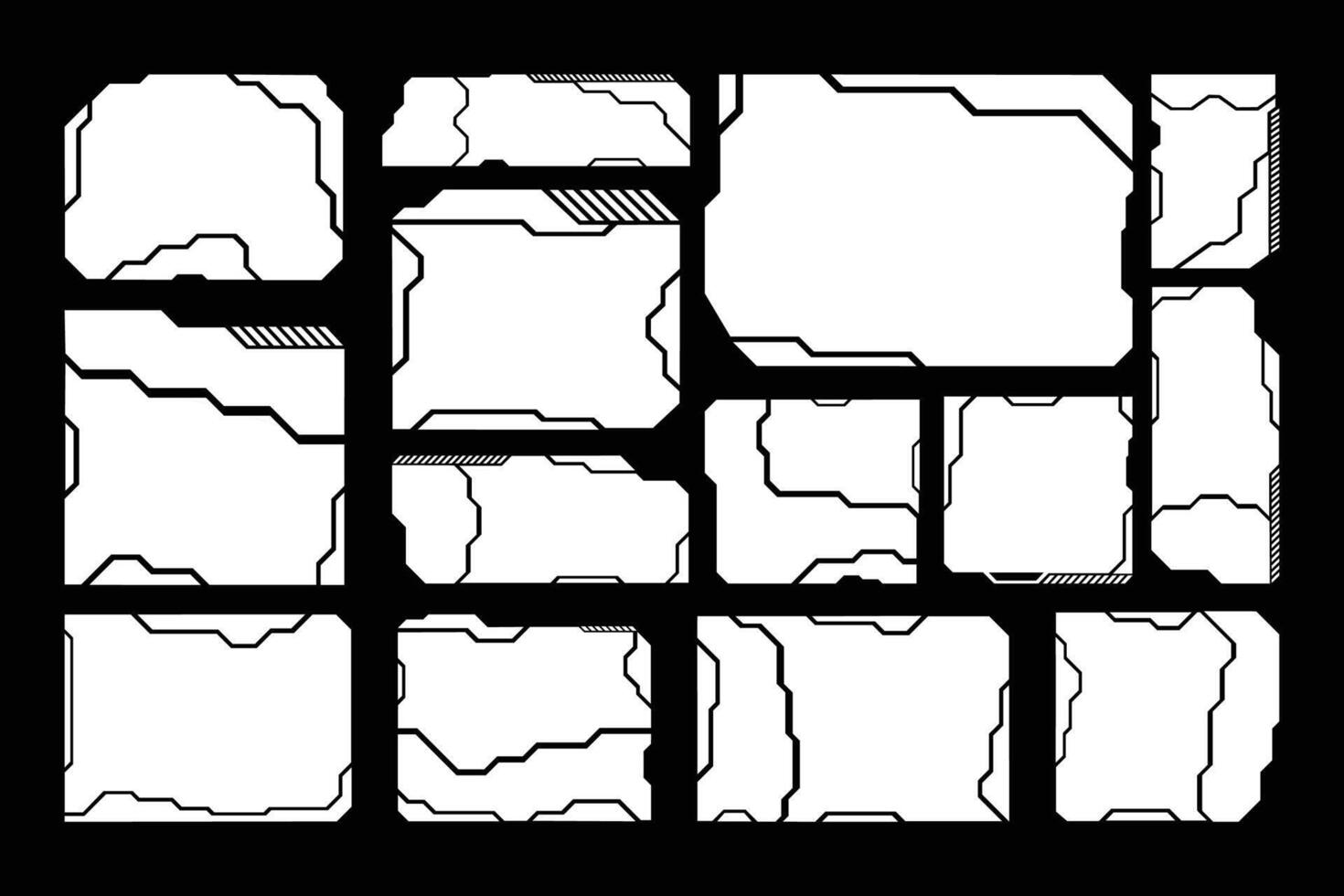 Futuristic Sci-Fi Frame HUD Interface Pack Elements. High-Tech Digital Borders for User Interfaces, Game Overlays, and Cyberpunk Designs Pro Vector
