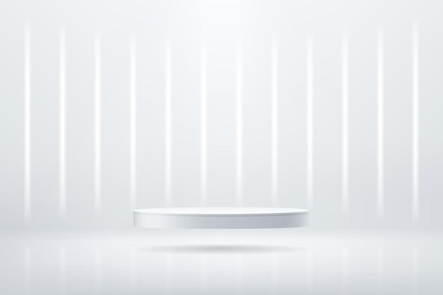 Abstract shine silver cylinder pedestal podium. Sci-fi empty room concept with vertical glowing neon lighting. Vector rendering 3d shape, Product display presentation. Futuristic minimal wall scene. Pro Vector