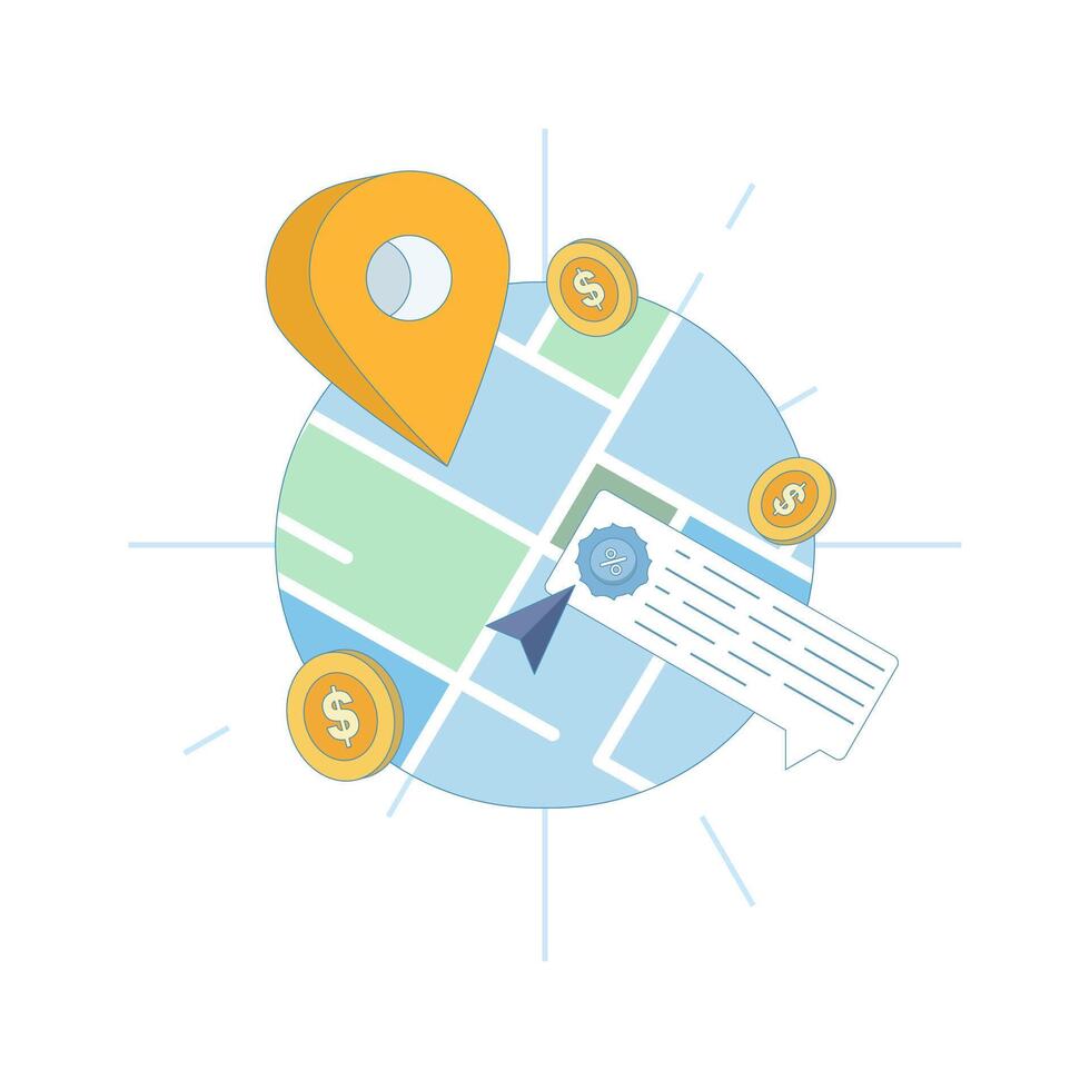 Local Offers Concept. Location-based marketing with geographically targeted discount notifications. Personalized local offers are sent through the app when customers enter an area. flat design. Pro Vector