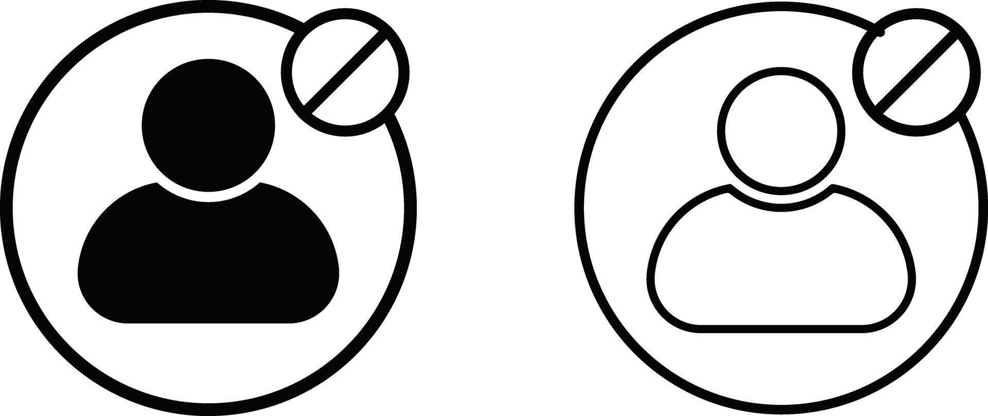 blocked user sign. Block profile icons set. Restricted and prohibited access. blocking disturbing and annoying accounts on social media Pro Vector