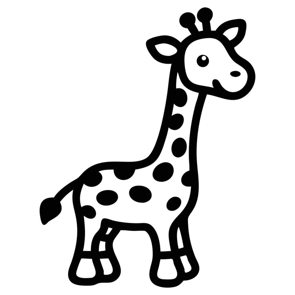 Standing monochrome giraffe displays simplistic charm with its patterned body on a transparent background Pro Vector