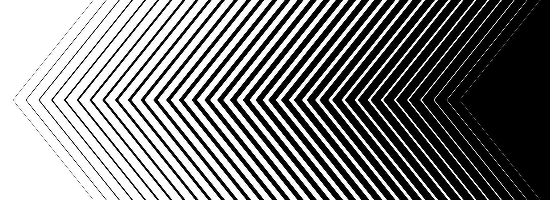 Black line arrow background. Repeating triangle gradation pattern backdrop. Fading halftone stripe gradient texture. Thin to thick speed line concept for overlay, poster, print, cover, banner Pro Vector