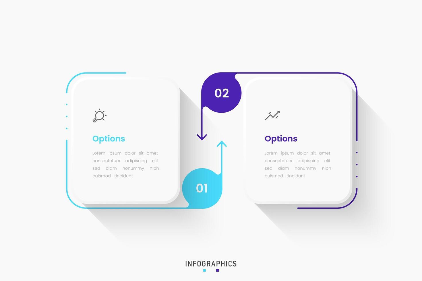 Infographic label design template with icons and 2 options or steps. Can be used for process diagram, workflow layout, banner, flow chart, info graph Pro Vector