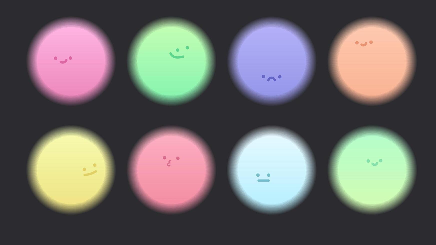 Set of blurred spheres with emotions. Emoji in bokeh style, soft gradient. emoticons with light glow Pro Vector