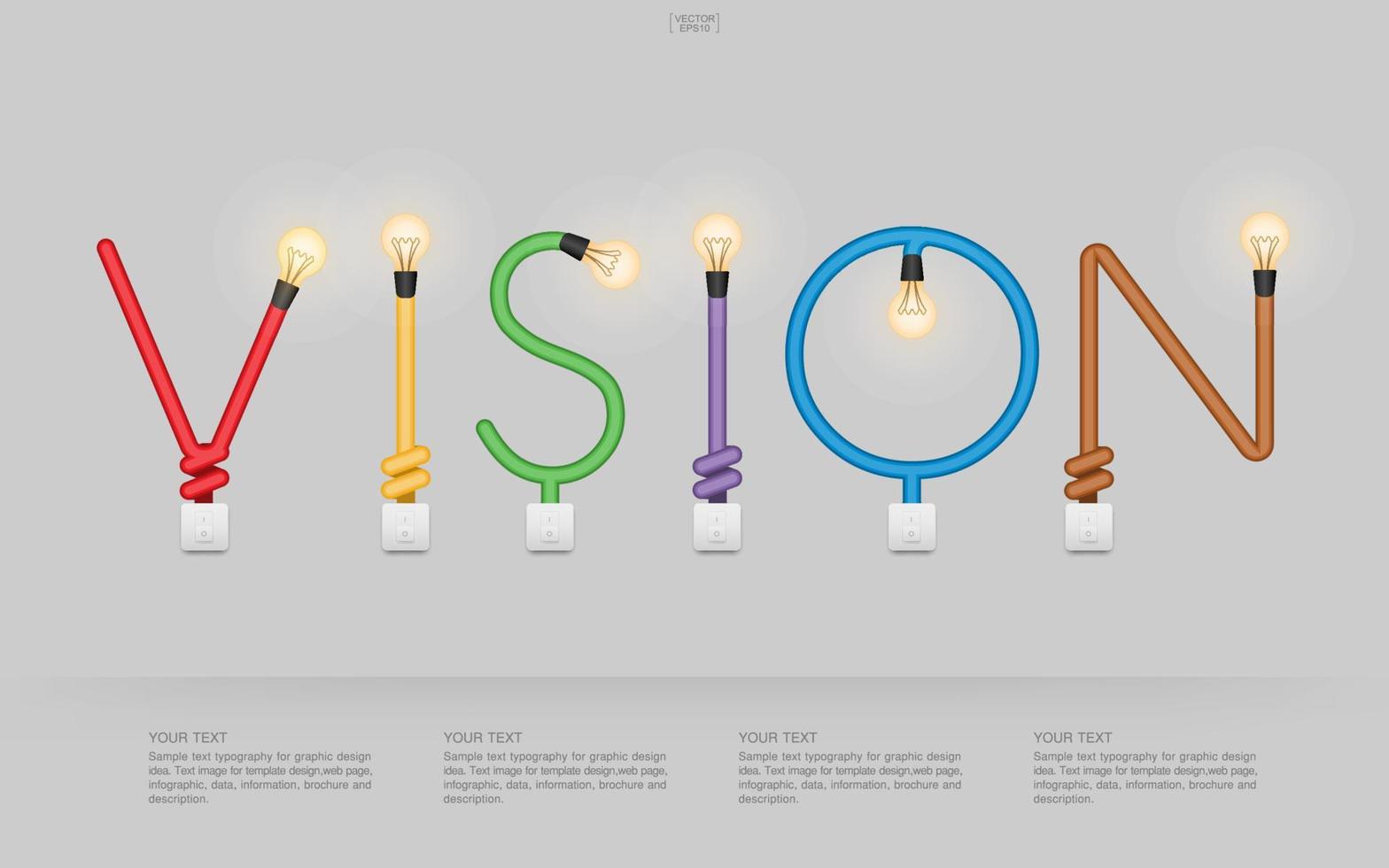VISION - Abstract linear alphabet of light bulb and light switch on gray background. Lamp and switch with area for infographic and text. Vector. Pro Vector