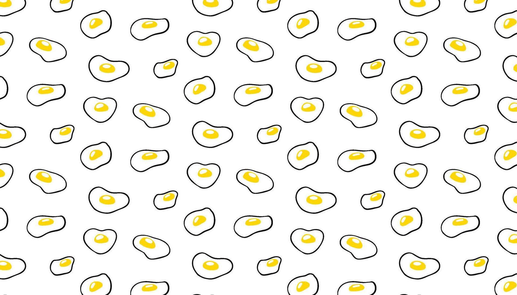 Fried eggs seamless pattern in various shapes. Bright top view texture for cafe menu, flyer, cookbook, wrapping paper, packaging, Egg Day card, and food-themed design projects. Pro Vector