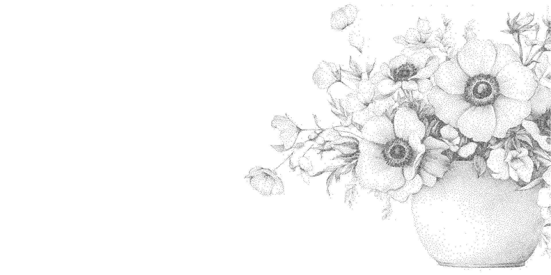Bouquet of flowers in a ceramic vase with gritty dot halftone effect. Grunge style composition for retro pop art banner, stipple texture with sketchy lines, bitmap. Pro Vector