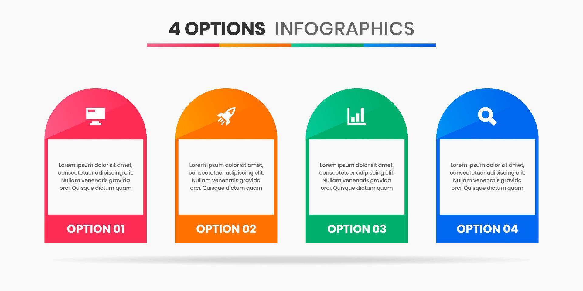 Simple Infographic Element Design Templates with Icons and 4 Options. Suitable for Process Diagram, Presentations, Workflow Layout, Banner Pro Vector