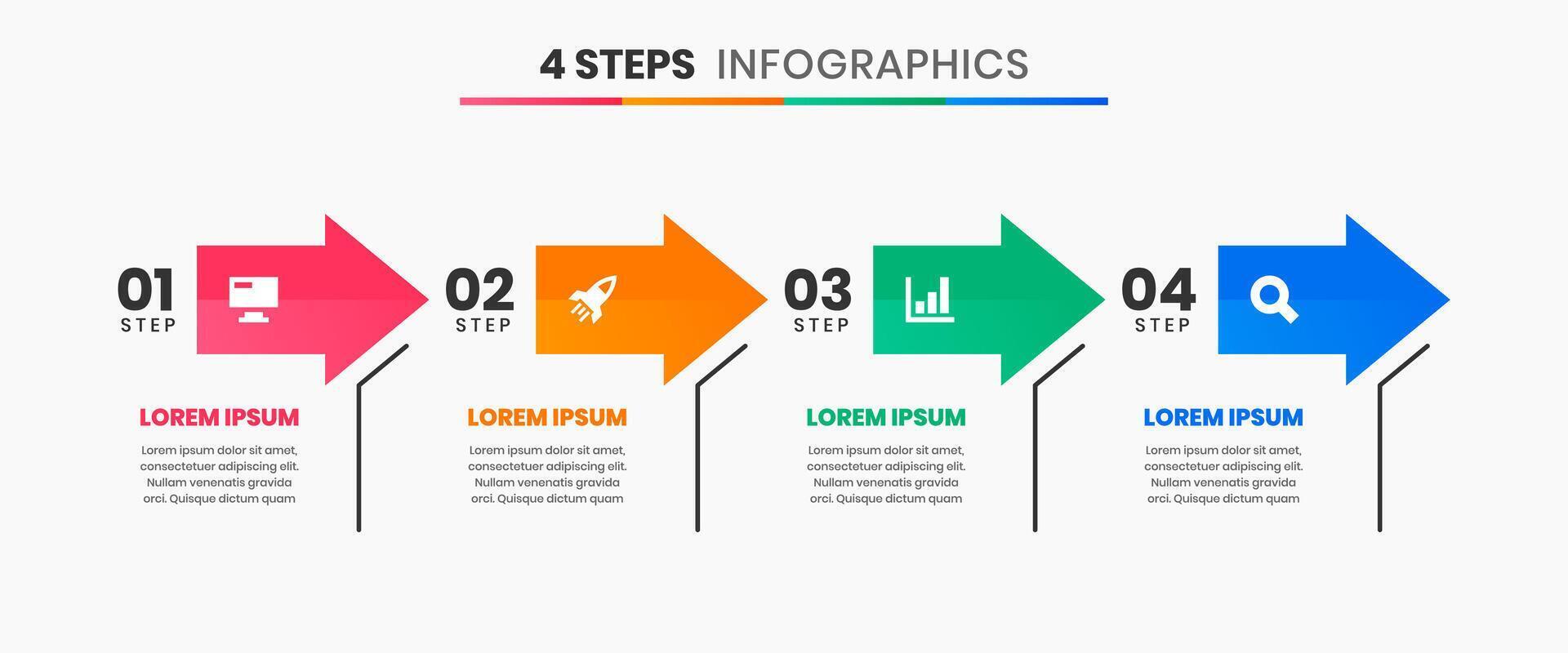 Arrows Infographic Element Design Templates with Icons and 4 Options or Steps. Suitable for Process Diagram, Presentations, Workflow Layout, Banner, Flow Chart, Infographic Pro Vector