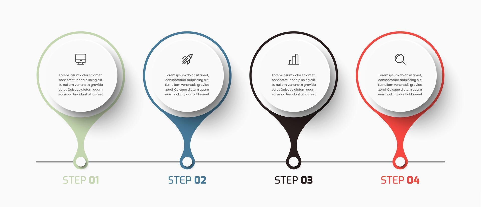 Business Infographic Template with Circle Label 4 Steps and Icon Can be Used for Presentation Pro Vector