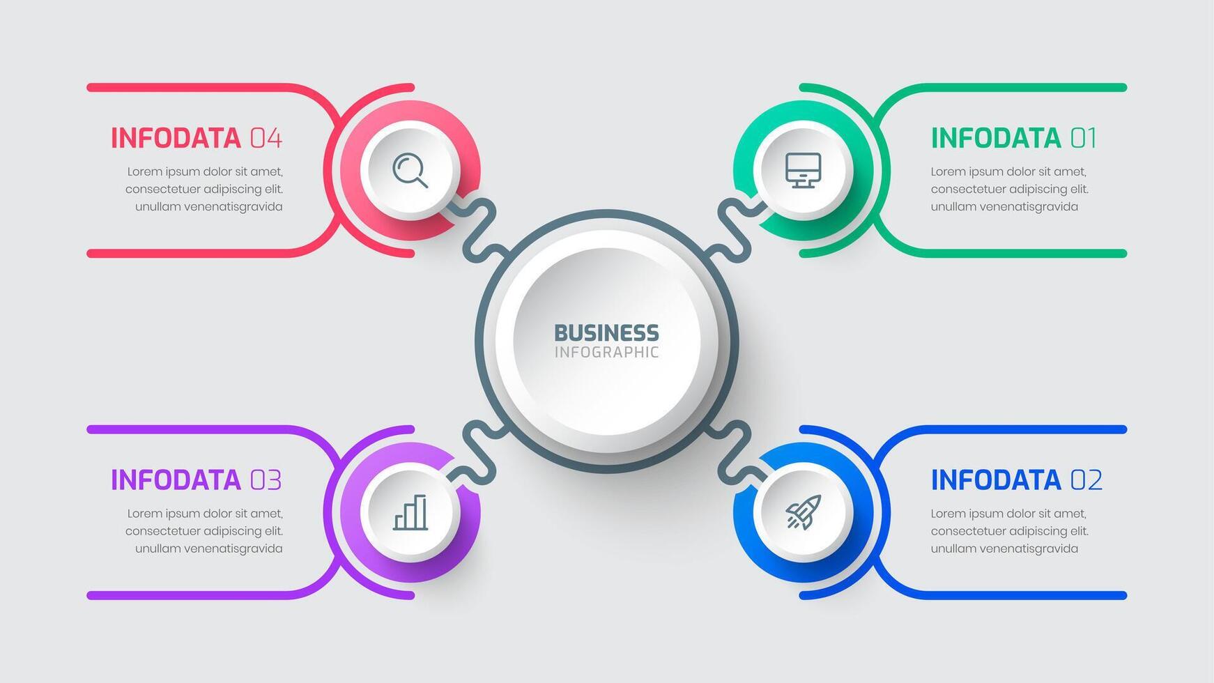 Infographic Label Design Template with Circle Label 4 Options and Icon for Presentation Pro Vector