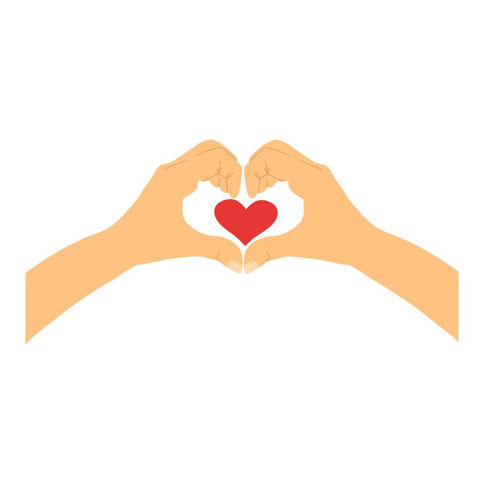 Vector illustration of hands showing heart shape gesture in hand drawn flat style Pro Vector