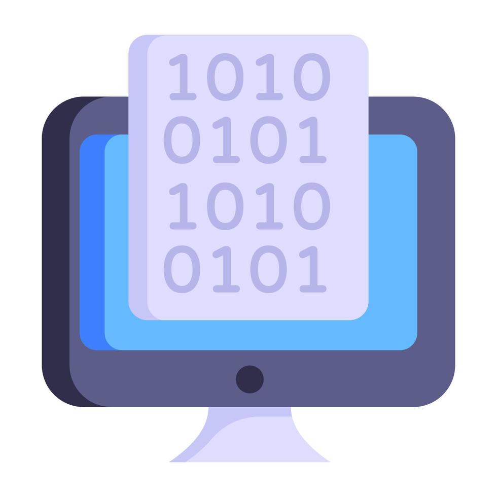 A computer language inside monitor, flat icon Pro Vector