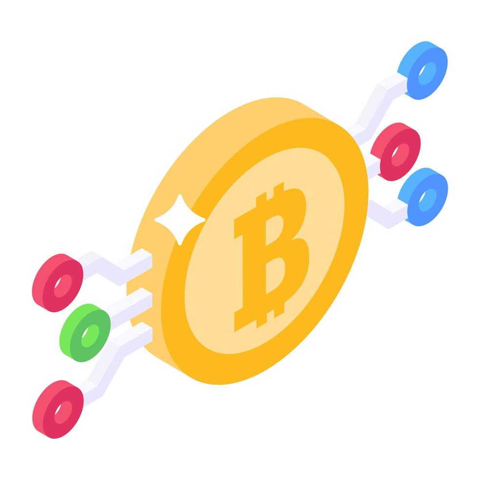 Cryptocurrency network, btc with network nodes in modern style Pro Vector
