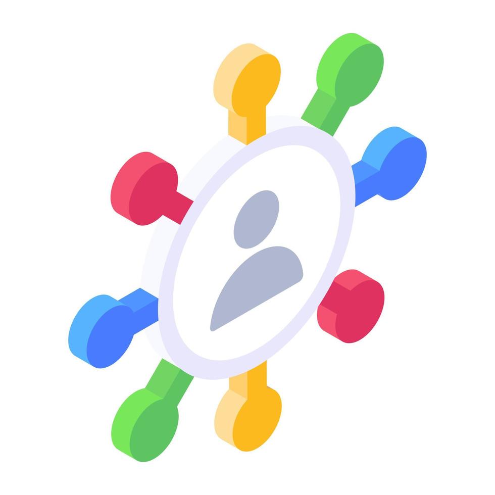 User surrounded by nodes denoting personal network icon Pro Vector
