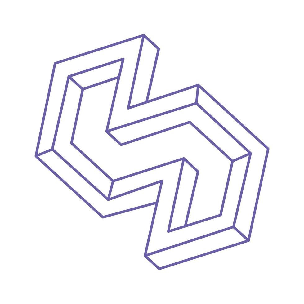 Impossible shape. Logo. Sacred geometry figure. Optical illusion. Abstract eternal geometric object. Impossible endless outline. Line art. Optical art. Impossible geometry shape on a white background. Pro Vector