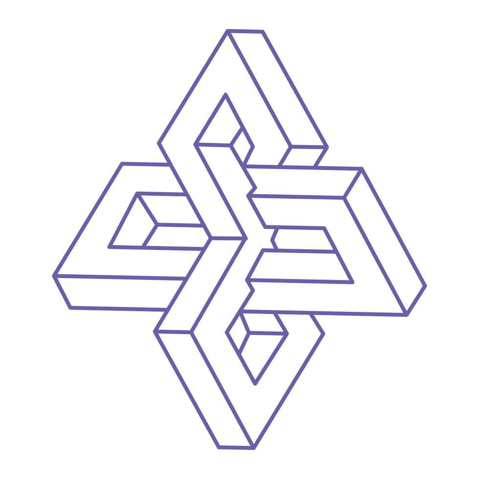 Impossible shapes. Optical illusion. Sacred geometry figures. Abstract eternal geometric objects. Impossible endless outline. Optical art tattoo. Impossible geometry shape on a white background. Logo. Pro Vector