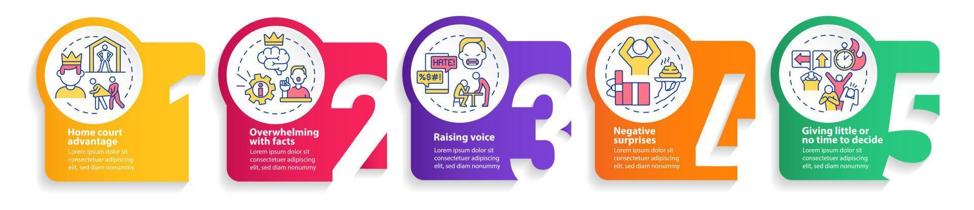 How emotional manipulation works circle infographic template. Data visualization with 5 steps. Process timeline info chart. Workflow layout with line icons. Myriad Pro-Bold, Regular fonts used Pro Vector