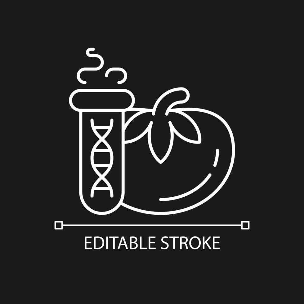 GMO testing white linear icon for dark theme. Genetic modification detection. Product gene analysis. Thin line customizable illustration. Isolated vector contour symbol for night mode. Editable stroke Pro Vector