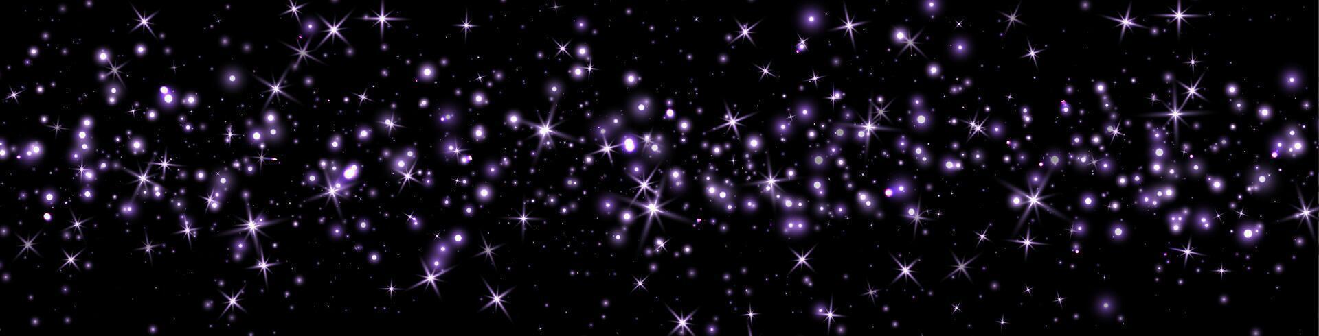 Purple glittering dots, particles, stars magic sparks. Glow flare light effect. Violet luminous points. particles on dark background. Pro Vector