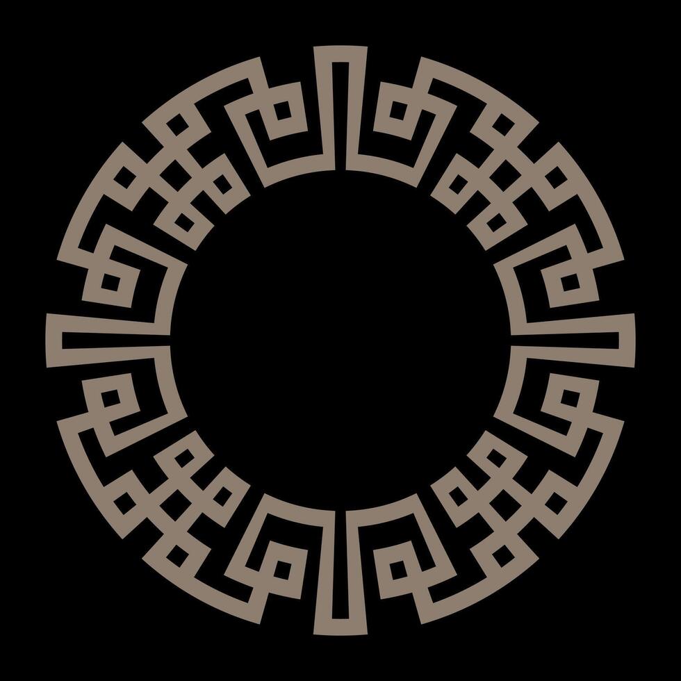 Oriental ornament in the style of baroque. Traditional classic pattern with golden elements. Round frame with greek key meanders. Circular Celtic Geometric frame in the form of circular pattern. Pro Vector